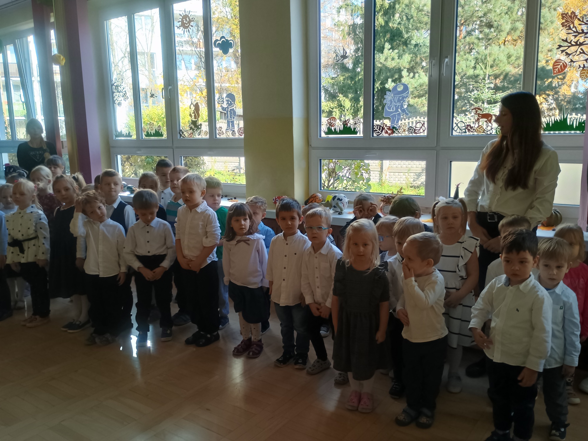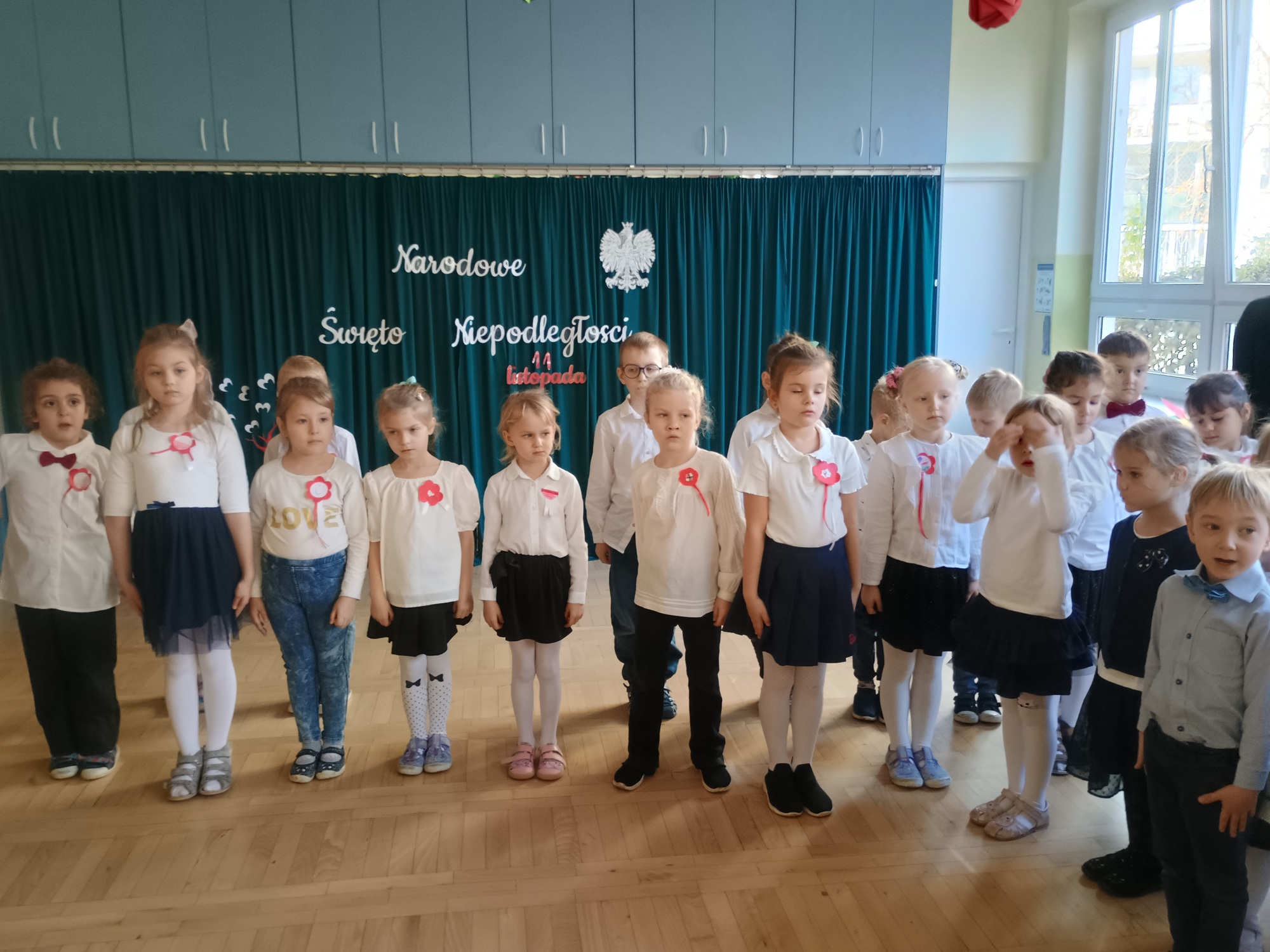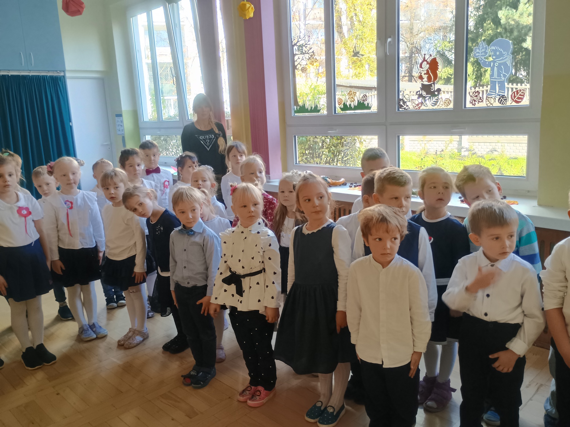 Nasze przedszkolaki wzięły udział w Akcji „Szkoła do hymnu”, która została zapoczątkowana w 100. rocznicę odzyskania przez Polskę niepodległości. W 2018 r. „Mazurka Dąbrowskiego” tym samym czasie odśpiewało blisko 5 mln uczniów i 480 tys. nauczycieli. Inicjatywa od kilku lat cieszy się dużym zainteresowaniem uczniów i nauczycieli. W ubiegłym roku w akcji wzięło udział ponad 4 mln 600 tys. uczniów, prawie 500 tys. nauczycieli oraz 16 tys. uczestników ze 125 szkół polskich i polonijnych.